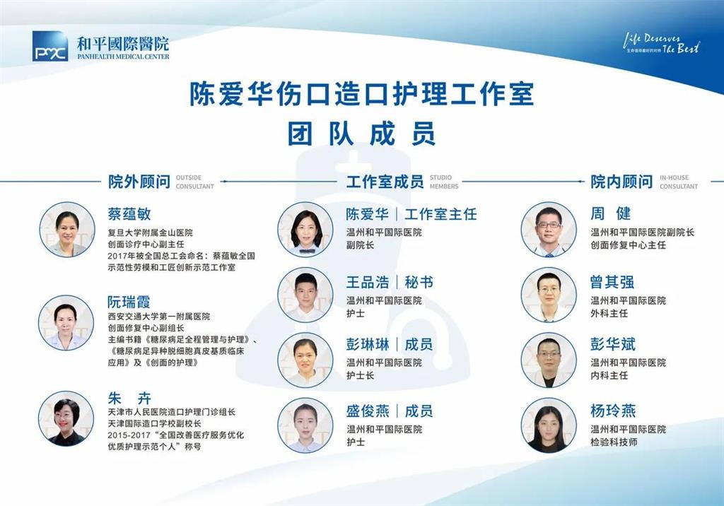 和平國際醫(yī)院陳愛華傷口造口護(hù)理工作室是浙江省首家傷口造口護(hù)理工作室。該工作室遵循醫(yī)院患者和服務(wù)對象至上的服務(wù)理念,倡導(dǎo)用細(xì)心撫平“傷口”,用愛心呵護(hù)“玫瑰”的服務(wù)品質(zhì)與追求,該工作室在傷口造口護(hù)理人才培養(yǎng)、學(xué)科建設(shè)、專業(yè)發(fā)展等方面不斷發(fā)展,著力打造成為溫州市及浙南地區(qū)傷口造口診療護(hù)理一體化服務(wù)中心,成為省內(nèi)外傷口造口人才培養(yǎng)重要基地。