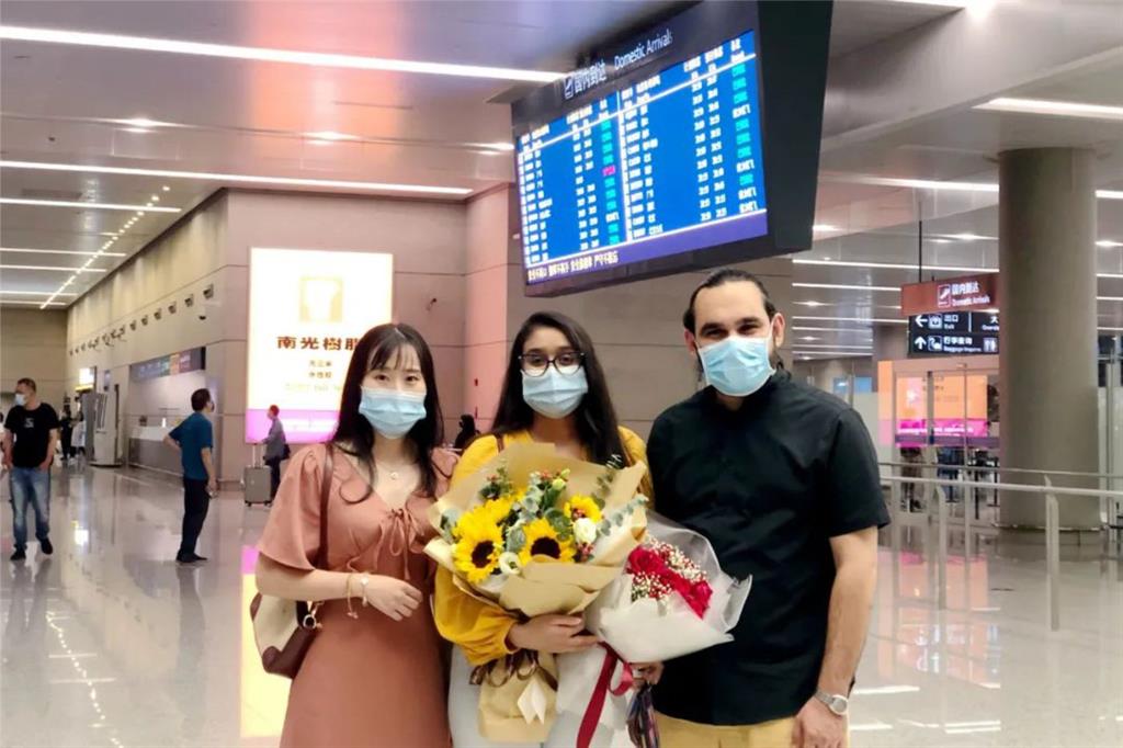 晚上9時許,和平國際醫院外科醫生、來自非洲毛里求斯的蘇瑪到達溫州龍灣國際機場。