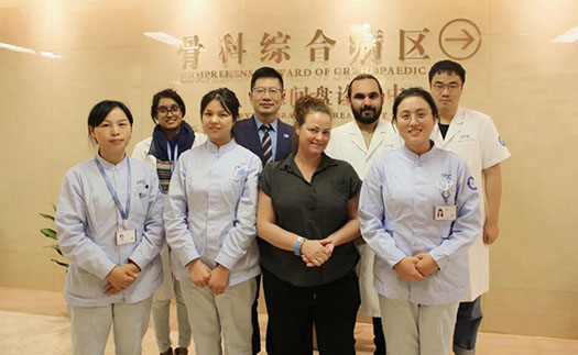 雖然手術(shù)相當(dāng)成功,但醫(yī)護(hù)人員緊繃的神經(jīng)依舊沒(méi)有松懈,他們馬上為Shannon Potgieter安排了術(shù)后急查血常規(guī)和24小時(shí)心電監(jiān)護(hù)。術(shù)后康復(fù)期間,考慮到外籍人士不同的飲食習(xí)慣問(wèn)題,院方還為她貼心安排了西式住院套餐。醫(yī)務(wù)人員無(wú)微不至的照顧,讓Shannon Potgieter迅速和大家打成一片,她和骨科中心護(hù)士長(zhǎng)周丹也成為了好朋友。