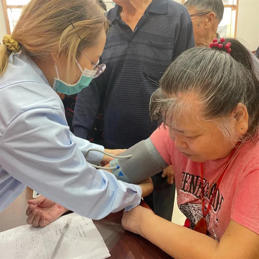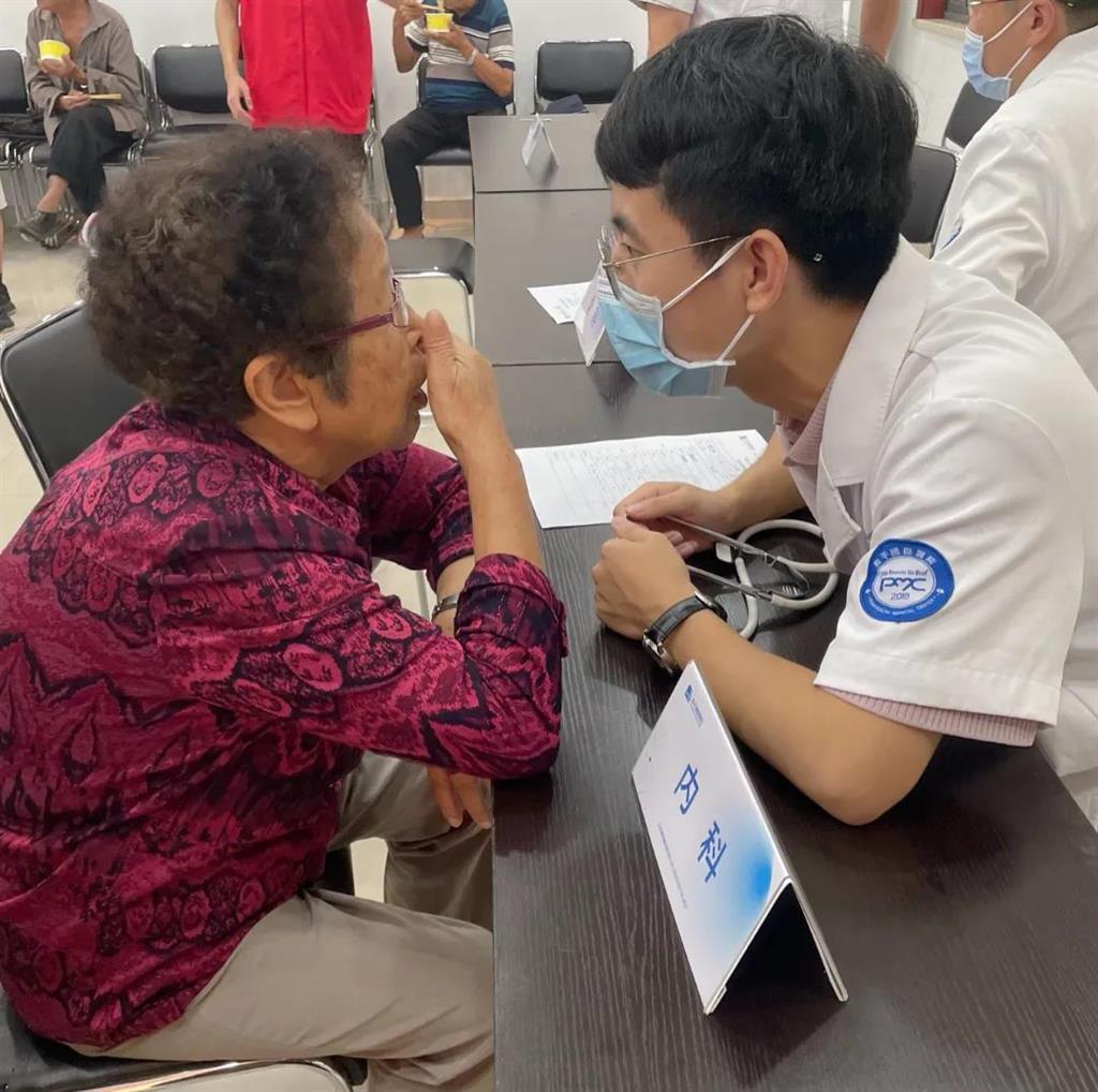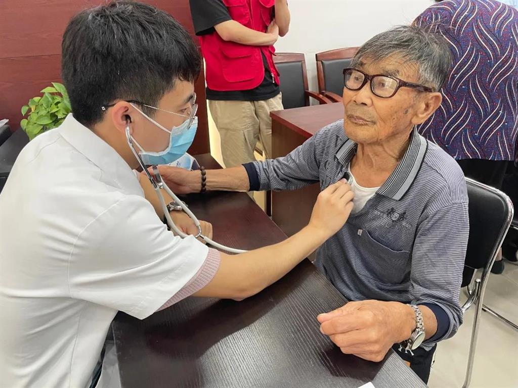 義診現(xiàn)場,老人們自覺排起了隊伍,醫(yī)護(hù)人員們逐一為他們量血壓、測血糖,還詳細(xì)詢問他們的日常飲食、用藥、作息等情況,并為老人耐心解答關(guān)于高血壓、糖尿病、心血管疾病、腰腿疼痛等困惑。
