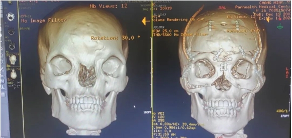 和平國際醫(yī)院舉全院之力,組織腦外科、整形外科、創(chuàng)傷與創(chuàng)面修復(fù)科、神經(jīng)外科、影像科、麻醉科等召開專家MDT會診。醫(yī)院邀請上海九院整形外科主任醫(yī)師、顱頜面外科領(lǐng)域權(quán)威專家韋敏教授以及省內(nèi)三甲醫(yī)院專家指導(dǎo)會診,共同研討治療方案、進行手術(shù)模擬設(shè)計、制定手術(shù)方案和圍手術(shù)期救治預(yù)案,周密安排術(shù)前準備和術(shù)后監(jiān)護處理。