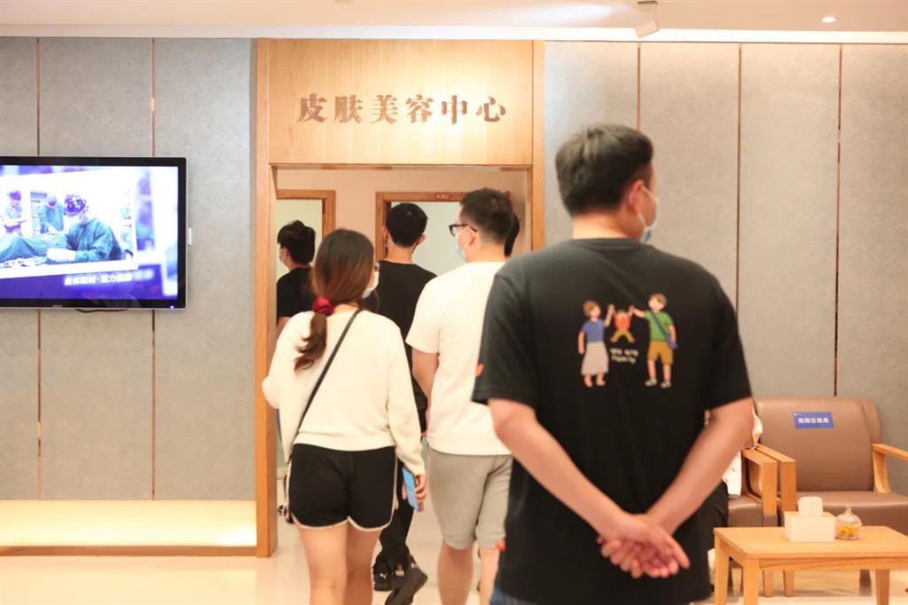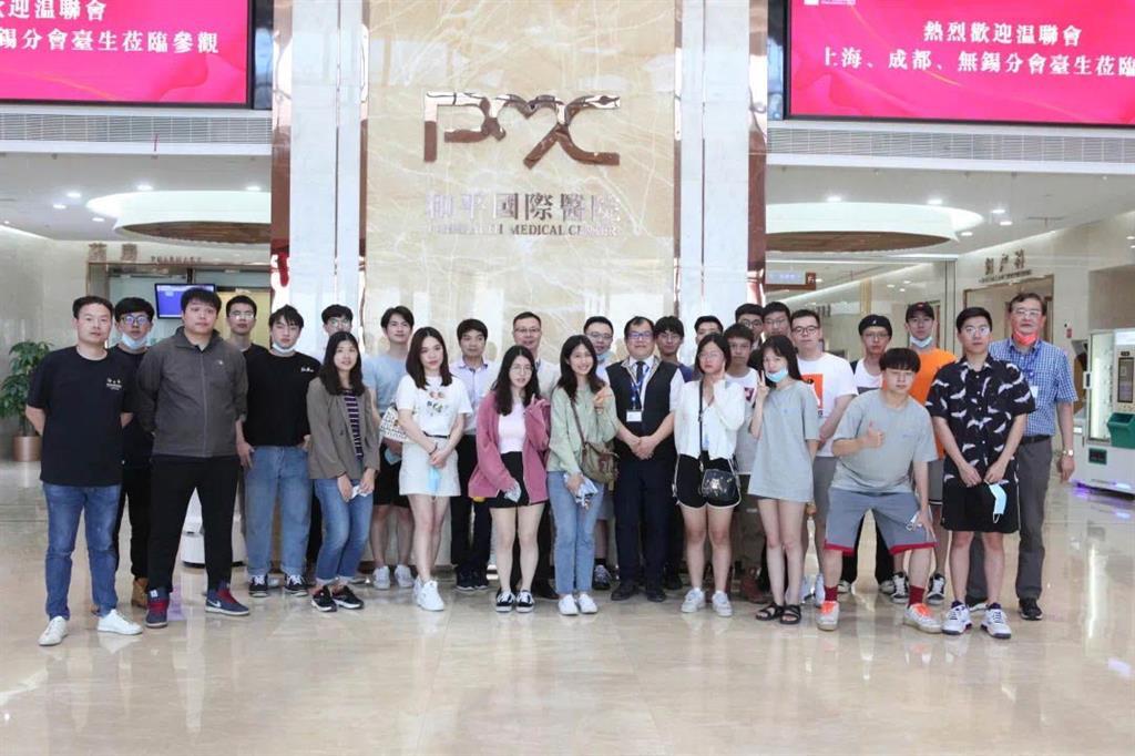 在醫(yī)院首席醫(yī)療品質(zhì)官應(yīng)純哲(左一)以及院長(zhǎng)助理林進(jìn)聰(左二)的帶領(lǐng)下同學(xué)們參觀了體檢與健康管理中心、整形美容中心以及皮膚美容中心等科室。兩人作為同樣來(lái)自臺(tái)灣的前輩,他們用方言與同學(xué)們聊起了“家長(zhǎng)里短”,更是向同學(xué)們述說(shuō)了在院工作的點(diǎn)點(diǎn)滴滴。 參訪過(guò)程中同學(xué)們表示這里給他們一種仿佛回到了臺(tái)灣醫(yī)院的錯(cuò)覺(jué)。當(dāng)同學(xué)們參訪整形美容中心以及皮膚美容中心時(shí)被墻上掛著的醫(yī)師簡(jiǎn)介所吸引,雄厚的師資力量讓同學(xué)們久久駐足……