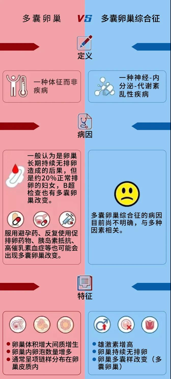除了上述臨床表現(xiàn),醫(yī)生還會(huì)借助一些輔助檢查,來(lái)最終判斷是否患有多囊卵巢綜合征,比如血清檢測(cè)(內(nèi)分泌測(cè)定)、B超檢查等。如果體檢的時(shí)候,被告知多囊卵巢樣改變,不要怕,這不等于多囊卵巢綜合征。那么,多囊卵巢和多囊卵巢綜合征是什么關(guān)系呢?多囊卵巢綜合征的診斷標(biāo)準(zhǔn)是:月經(jīng)稀發(fā)、閉經(jīng)或不規(guī)則子宮出血,出現(xiàn)高雄激素的臨床表現(xiàn)(比如多毛、痤瘡、肥胖等)或者超聲提示卵巢多囊樣改變,同時(shí),需要排除其他可能引起高雄激素血癥和排卵異常的疾病。