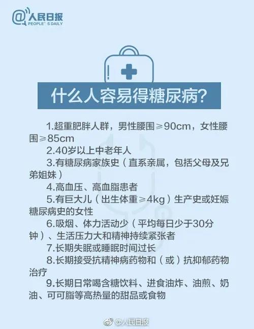 防治糖尿病,最關(guān)鍵的是提高全社會對糖尿病的認知。什么人容易得糖尿病?糖尿病有哪些征兆?怎么做才能遠離糖尿病?