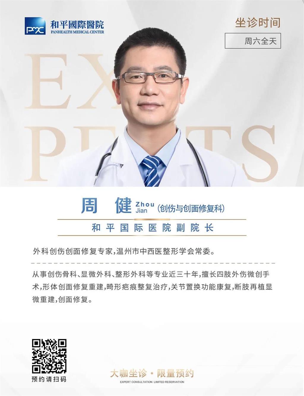 為了使廣大患者享受到更優(yōu)質(zhì)的醫(yī)療服務(wù),滿足患者更高層次的診療需求,和平國(guó)際醫(yī)院開(kāi)設(shè)了名醫(yī)館,特邀溫州醫(yī)科大學(xué)附屬第一醫(yī)院創(chuàng)面修復(fù)科主任醫(yī)師,醫(yī)學(xué)博士,碩士研究生導(dǎo)師王健來(lái)院定期坐診。