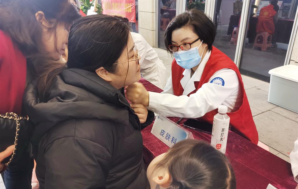 義診活動(dòng)現(xiàn)場(chǎng),和平國(guó)際醫(yī)院內(nèi)科、皮膚科、口腔科等科室專家齊上陣,醫(yī)護(hù)人員耐心為社區(qū)居民測(cè)量血壓、血糖、口腔檢查、皮膚問(wèn)題咨詢、指導(dǎo)治療用藥,宣講健康知識(shí)。